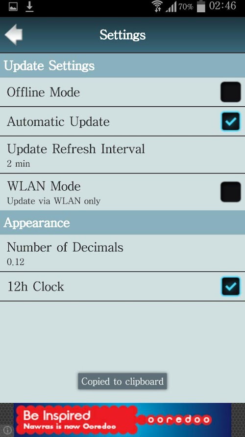 - live exchange rates and auto update ( you can choose the time of update from the settings)