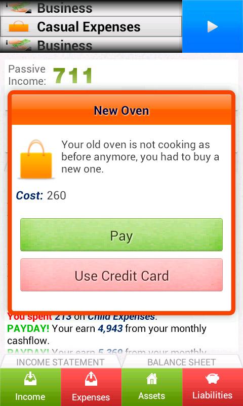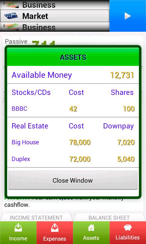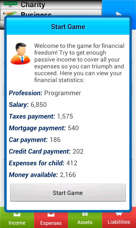 The main objective of the game is to get your passive income overcome your expenses, so that your money work for you, instead of you to work for the money!