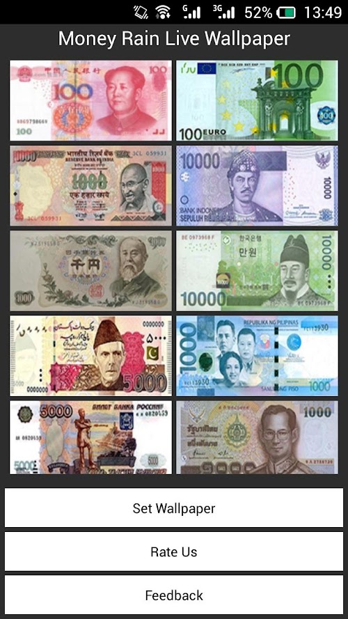 This version of Money Rain Live Wallpaper Android App comes with one universal variant which will work on all the Android devices.