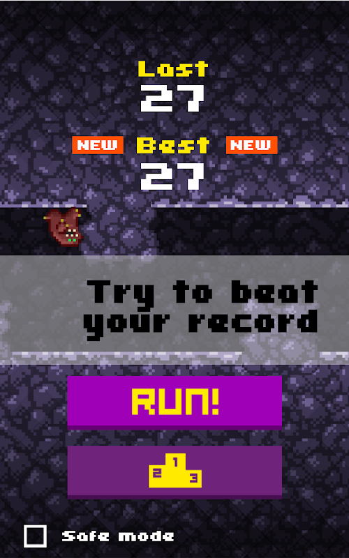 Short and fast games where you will have to make your best moves. With a very simple game mechanic based on screen taps, you have to jump to avoid the obstacles and keep running through the ceiling! Every avoided obstacle will give you score that you will be able to share on Google Play Games and compare it with other people's score around the world. Try to be the number 1!