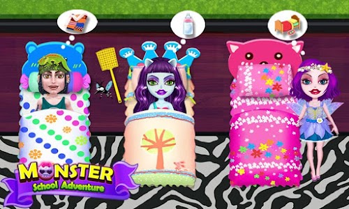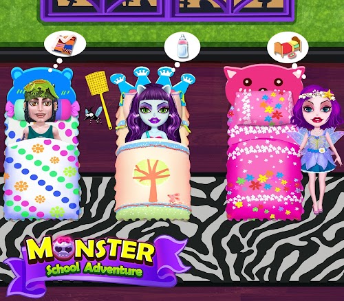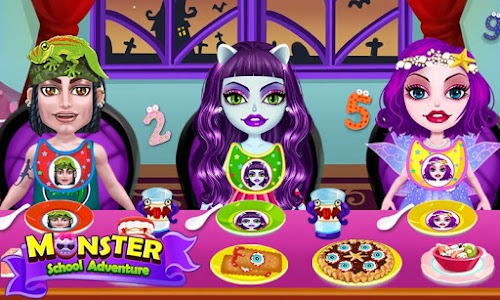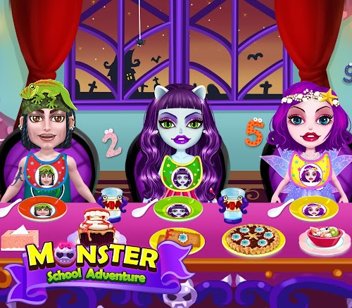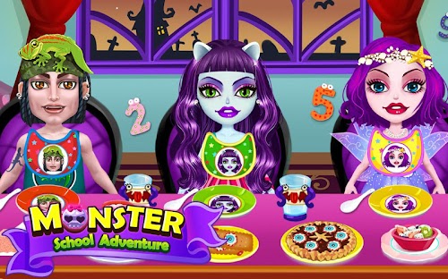 Ok, first things first: monster kids need to be taken care of, and that means they're hungry. What kind of food do these class room kids eat? Why, monster biscuits and eyeball pizza, of course! Feed the little critters weird monster snacks so their stomachs are full to the brim, then play all kinds of games with them. Nobody said class had to be boring. Make it play time with Monster School Adventure!