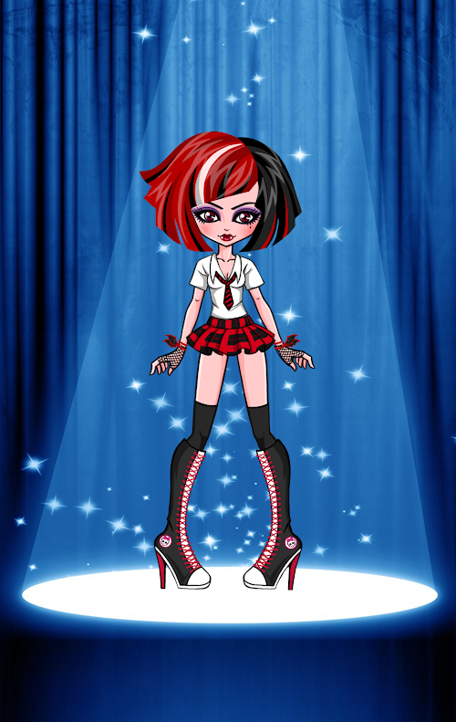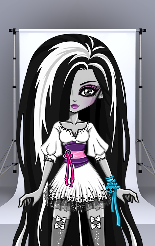The ghoul is excited to go out with her friends tonight to check the new diner in town! Dress her up for her night out, going to dinner with her Monster girl friends. You can start with her gorgeous long black hair that you can put up in a pony tail or curl it, you can even make her some edgy bangs. Dress her up in a very glittery gown with puff sleeves that will make her shine an outfits with a simpler elegant dress or you could mix and match a short sleeved shirt, a ruffled top with a cute corset or a glitzy blouse with ruffled skirts or ripped jeans.