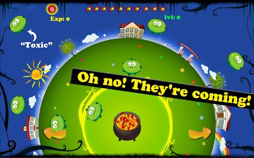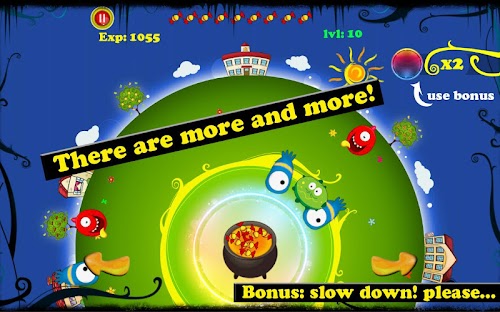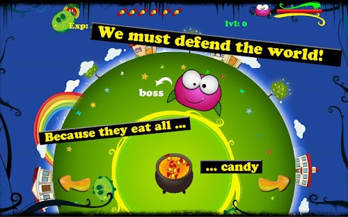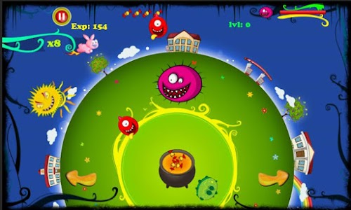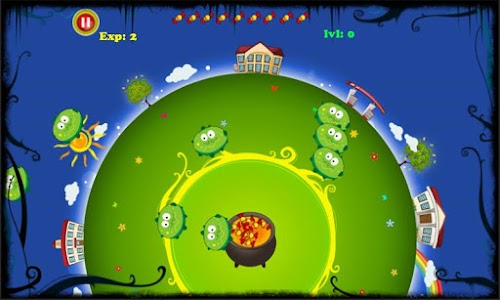 Aim of the game: You have to defend your cauldron of candy from a horde of hungry monsters. Nice, little monsters are coming from all sides. Rotate the world to find them all. Touch the monster to destroy it. Monsters in our game is hungry and evil monsters. You have to defend against them the greatest earthly treasure - candy.