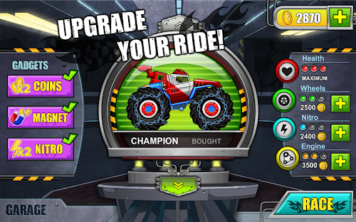 - Instal a bigger and more sicker nitro tank under your monster car smashing truck and fly through the air