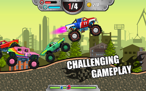 - Different machines for you to drive in, earn cash and buy the monster truck you like