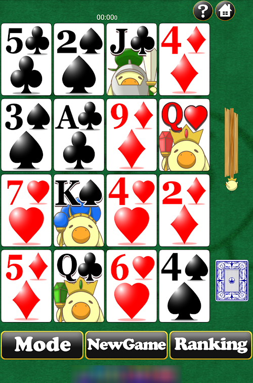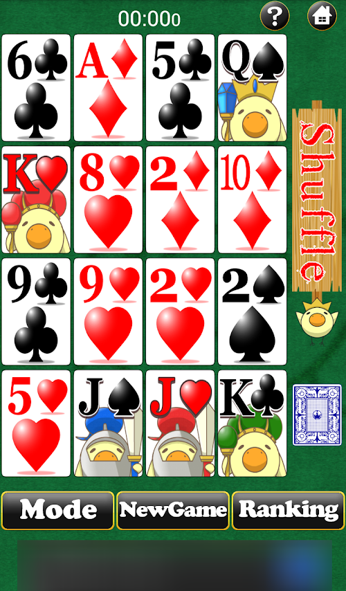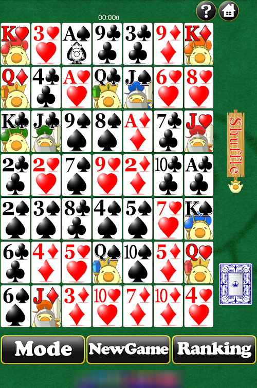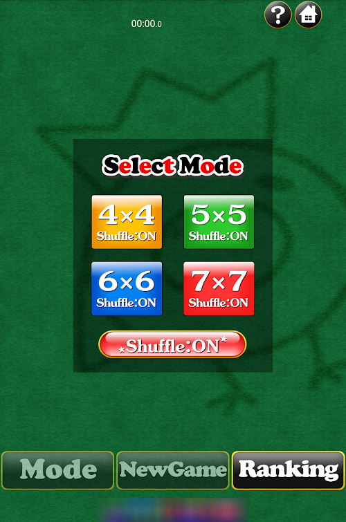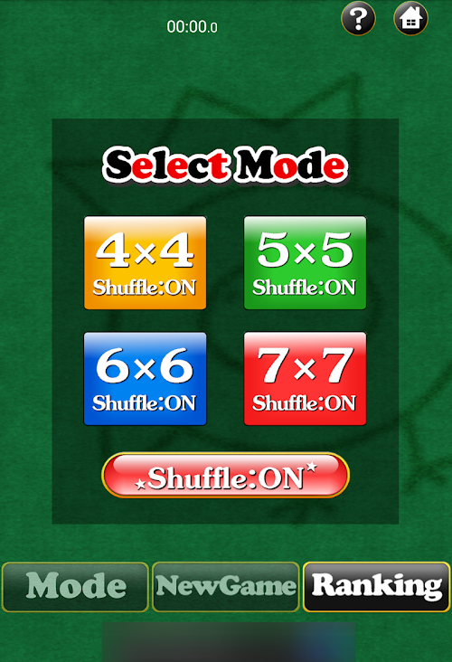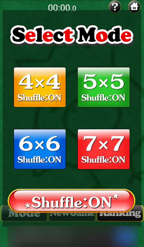 - There are eight modes.(number of cards in row is 4 to 7, shuffle is enabled or disabled)