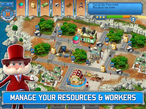 Help contractor Lloyd Andrews gather the resources needed to complete work on the prison. Manage your workers skillfully to finish the levels in time, while repelling attacks from Call Palone's hired thugs as they try to send your project to the bottom of the bay!