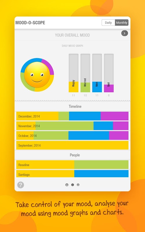 So, the more you use Mood O Scope the better you can understand your mood swings and mood patterns. With the mood analysis tool in-built in the app, you can take better control of diseases like: depression, irritability, anxiety; other mood related changes or mood disorders and keep your mind healthy.