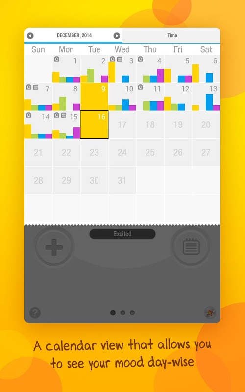 • Mood O Scope has a calendar view that allows you to see your mood day-wise and the attached tags