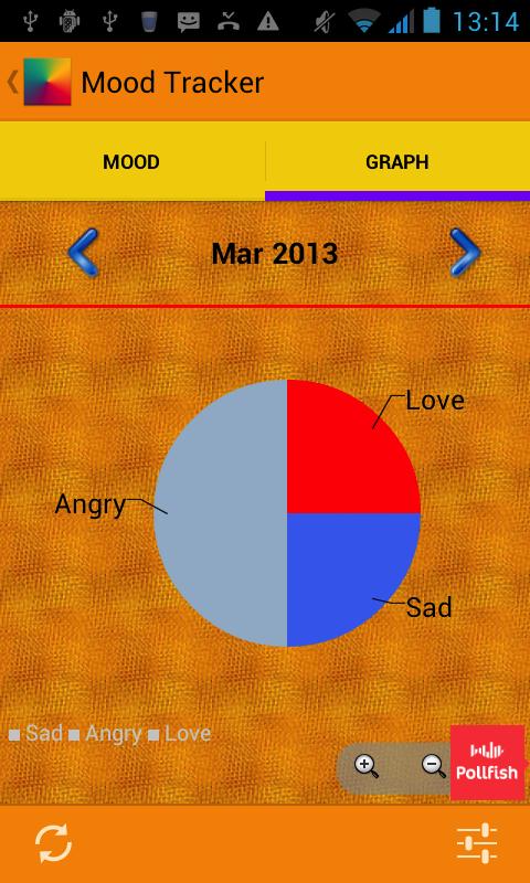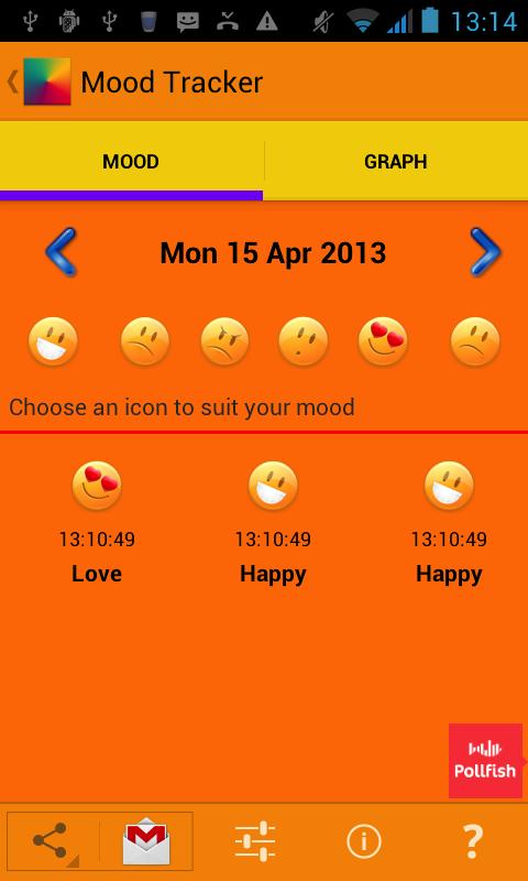 Moods will be saved and can be viewed on graphs. Swipe to reveal the graph