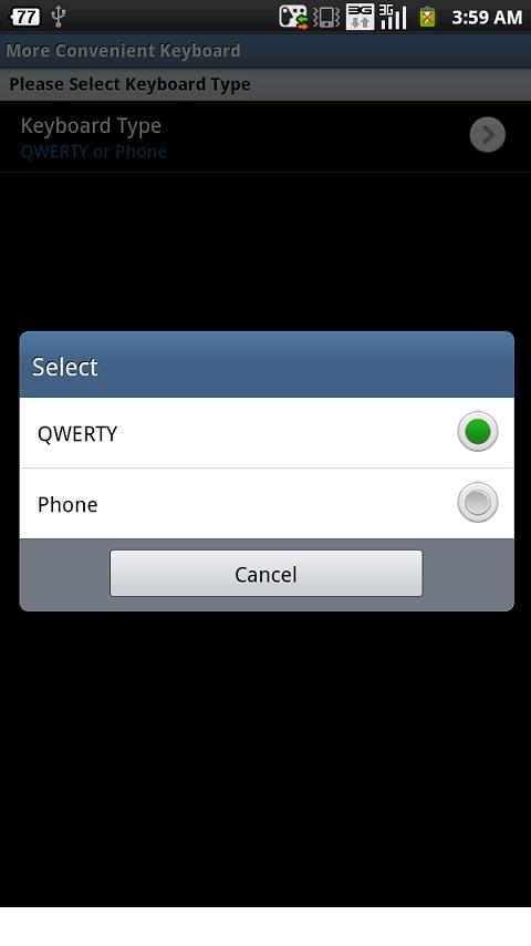This keyboard has two layouts: QWERTY and Phone, for those of us with a small screen. Whatever is more convenient for you, you can select the layout of your choice from the settings menu.