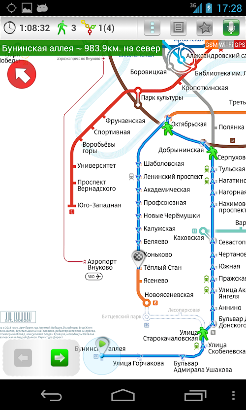 Metro map of Moscow (Russia) for app called "METRO 24" from Studio of Artemiy Lebedev.