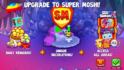 If you buy a Super Moshi Membership you will receive Gloop, Rox or Coin deliveries every day for as long as you choose! You will also gain access to exclusive new Moshling sets such as the Tunies, as well as groovy decorations. Players can choose a membership option for the length of time they feel comfortable playing for. See in-app options! For more info on our memberships and in-app purchases, please see our Parents Page at http://mindcandy.com/for-parents/play-smart-top-tips.