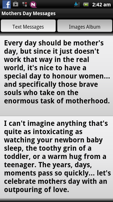 This version of Mother's Day Messages Android App comes with one universal variant which will work on all the Android devices.