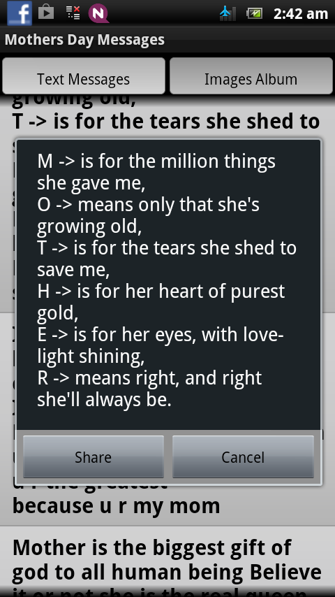 If you are looking to download other versions of Mother's Day Messages Android App, We have 1 version in our database. Please select one of them below to download.