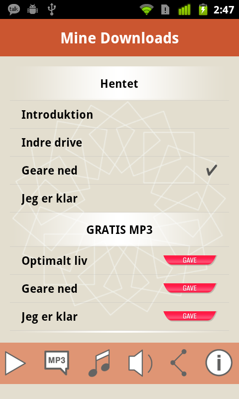 Vigtigt: Du kan altid downloade dine produkter igen gratis, hvis noget går galt under download processen, opdatering, eller hvis du skifter telefon. Brug genskab funktionen inde fra app'en.