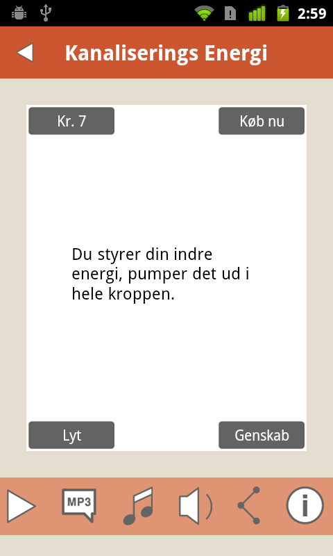 Der følger en gratis hypnose der hedder "Jeg er klar" med din download. Du kan senere tilkøbe andre selvhypnoser direkte fra programmet. Priserne for disse er 99 kr.
