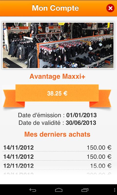 • MON COMPTE : Pratique pour avoir toujours sur soi sa carte de fidélité MOTO AXXE, retrouvez également vos informations personnelles, vos derniers achats et vos chèques fidélité...