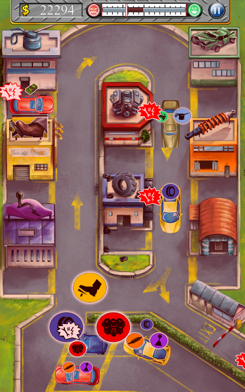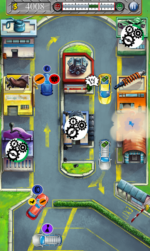 As chief mechanic at your own garage, you will need to manage your customers' needs without any mishaps! Send cars to 7 different workshops, including tire check, oil change and transmission replacement.
