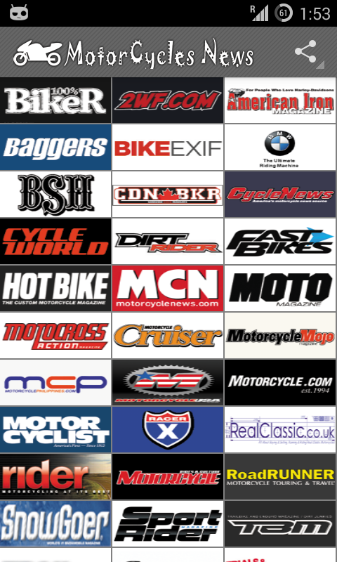 Motorcycles News is a news reader that have more than 30 feeds. You will be informed in all moment what happen. And the best is that it is very simple usability.