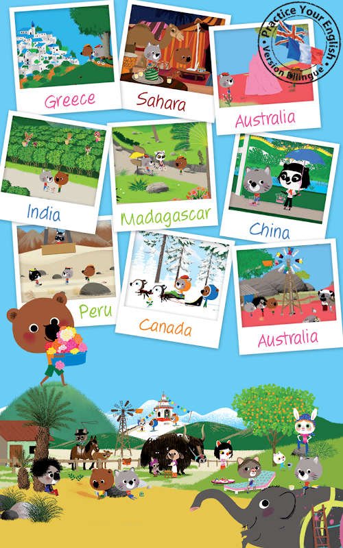 It is story of Mouk and Chavapa. They are two globetrotters cycling around the world. From Tokyo to New York, from Australia to Madagascar and through Greece, these two friends meet inhabitants from all over the planet… and because nothing is never quite like home, adventure is always knocking at their door! Climb on a bike with them and discover this realistic, modern and colorful world.Amazing people, unbelievable landscapes, and unknown customs: our two travelers will discover many different countries together.