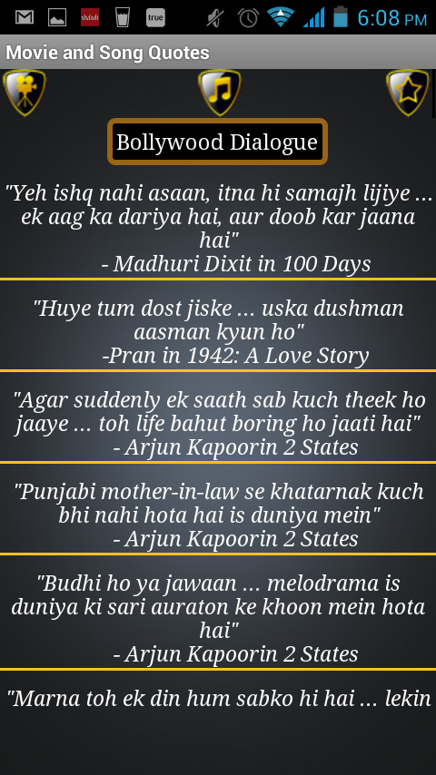 - Now get updated Quotes from your favorite Movies & Songs with just one click!
