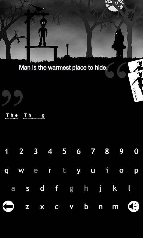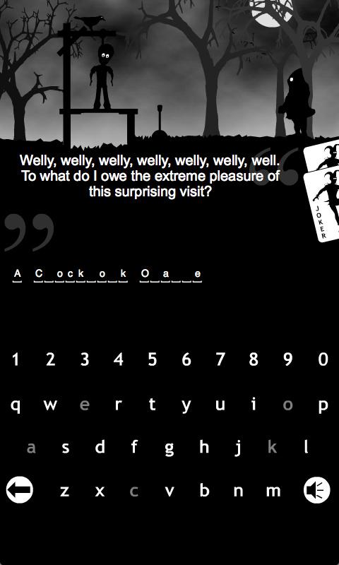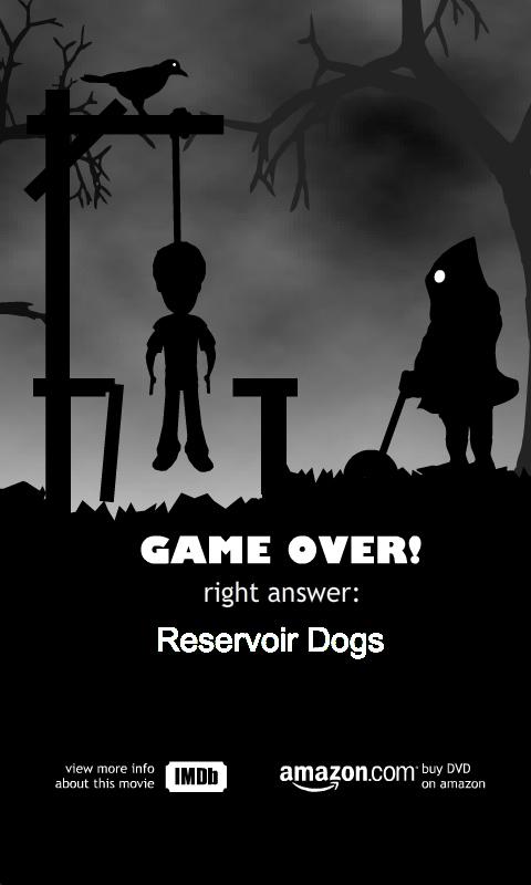 Game is based on the rules of the classic game HANGMAN. The role of the player is to save executed Querentin Tentarino from death. The key is solving names of 30, 40 or 50 movies depends on game difficulty. The main tool for guessing is the phrase from movie. Executioner will choose one movie at the beginning of each round.