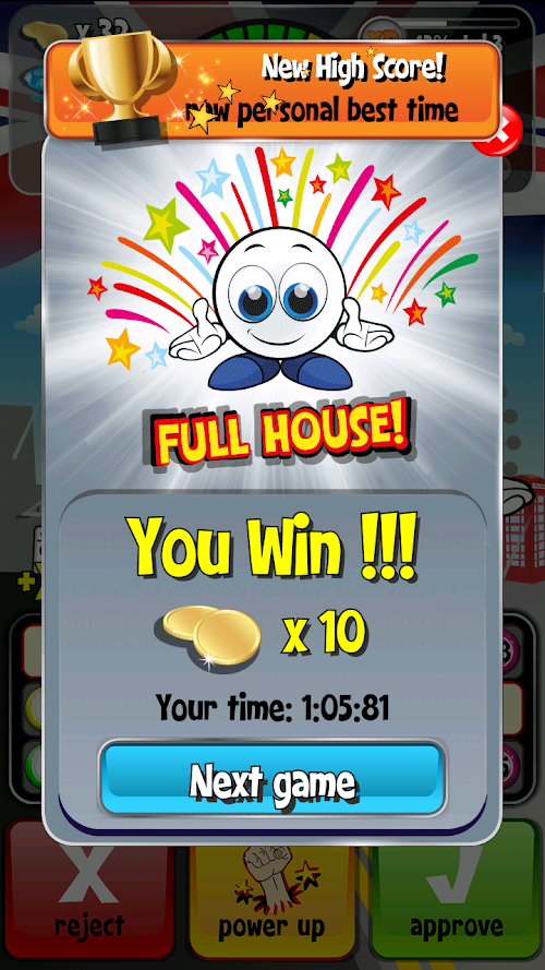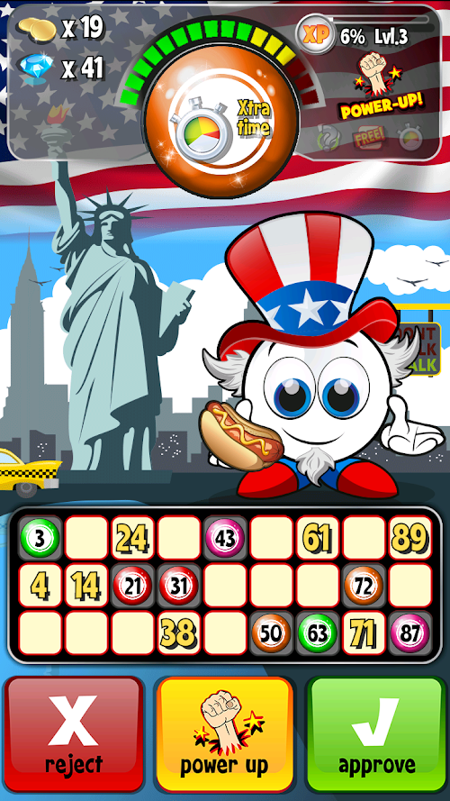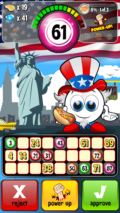 - Mr Bingo Ball will shoot bingo balls at you. APPROVE the ball if you have it on your bingo card, REJECT the ball if you don't.