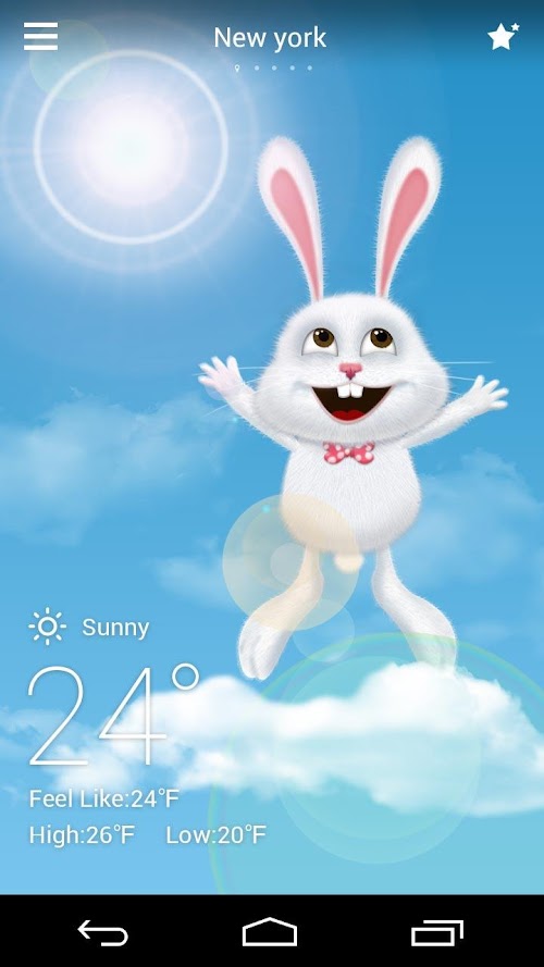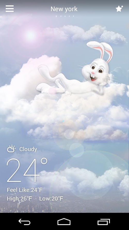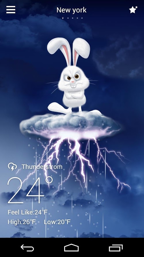 Mr Rabbit Live Wallpaper displays dynamic backgrounds for 7+ weather conditions: sunny, rainy, snowy, thunder, cloudy, overcast, foggy, etc.