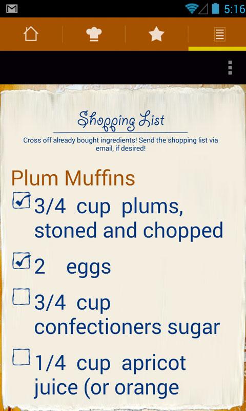 Add the baking recipes to the app's shopping list and cross off the ingredients while shopping