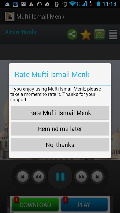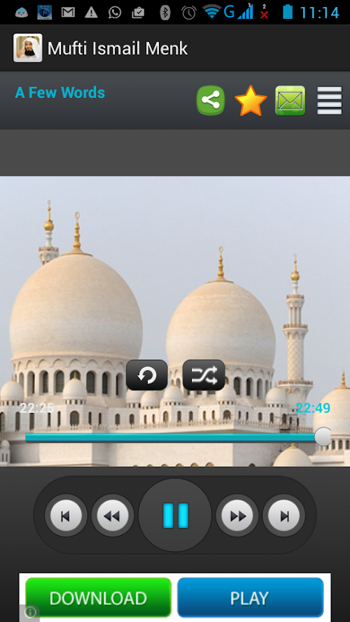 Mufti Ismail Ibn Musa Menk Audio Lectures Library is free app with which you can download,stream,listen and manage lectures(Speeches/Bayanat) by well known scholar Mufi Ismail Menk.We have tried to provide all the brothers and sisters with an opportunity to listen to this Jayaad Alim (Scholar of islam) right from their phones.