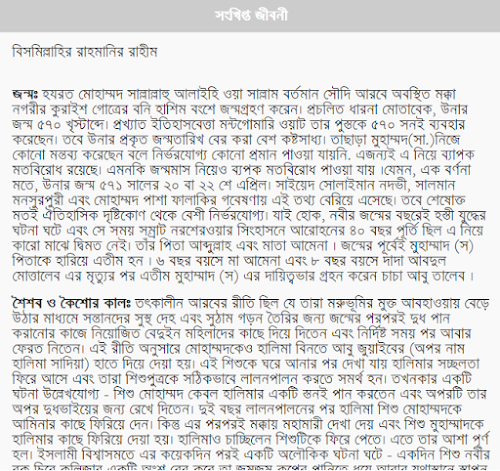 Biography of Hajrat Muhammad SWA in Bangla. হজরত মুহাম্মদ স. এর সংক্ষিপ্ত জীবনী।