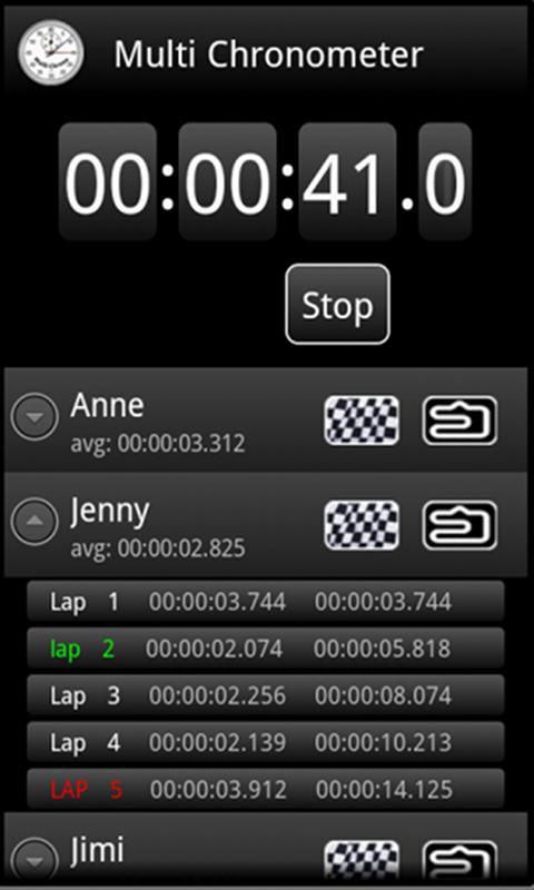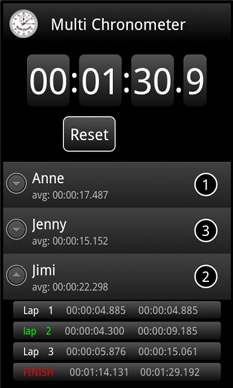 MultiChrono gives you all the stats to analyse the race. Tap on the arrow icon next to each contestant to access their lap times.