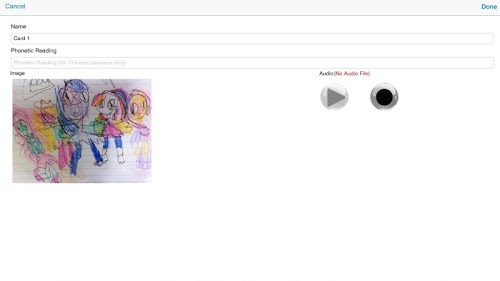 3. An interface that allows parents to input their own sets of words, pictures, and audio, so silly faces and sounds, family members saying “hello”, etc. can all be added. The possibilities are endless!