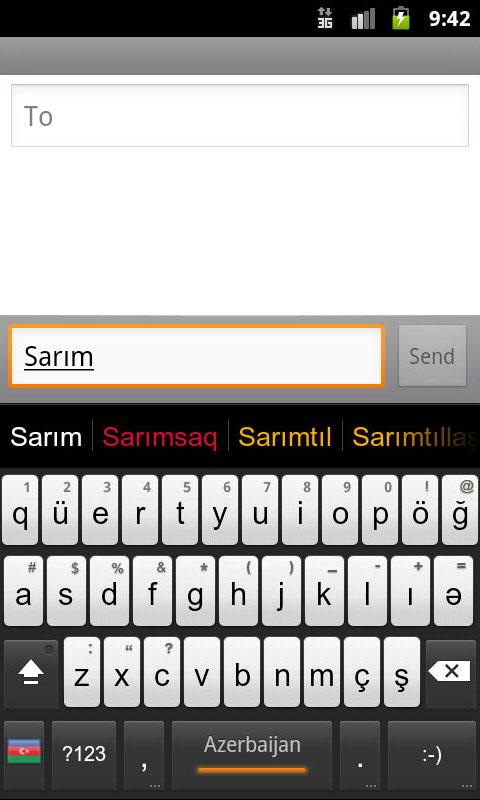 Includes English, Russian (Русский), Russian 4 row, German (Deutsch), Spanish (Español), French (Français), Georgian, Turkish Q (Türkçe Q), Turkish F (Türkçe F), Ukrainian and Azerbaijani (Azərbaycan) keyboards. Functional keyboards different layout for search, sms, browser, email. Can change font size and style of keys.