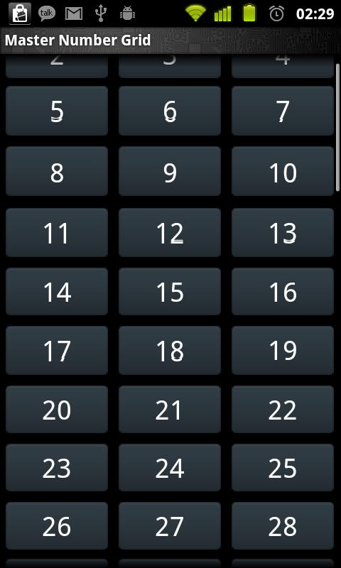 2. Open Numbers Grid to load a grid of numbers. The grid is an Endless list of numbers. Clicking on any number will load it’s factors. Long click any number below 100 to load it’s table.