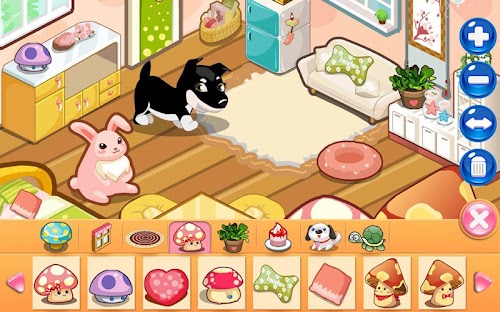Customize every element of your mushroom house : furniture, decor, food, pets and more.
