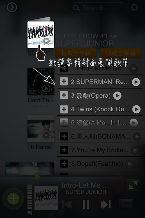 3. Music Go! Collection area, with the preferences can edit multiple music song list, as long as a key to the entire album can be added to playlists, music collection easiest!