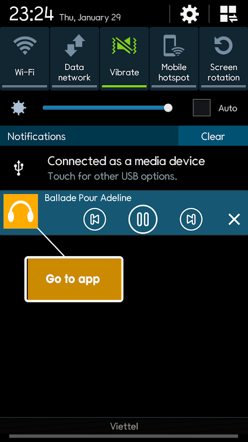 This application is a simple Music Player for Gear Fit. It'll lets you seamlessly control the music stored on your mobile device.