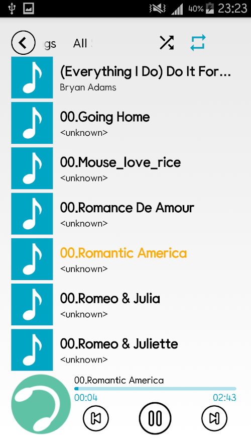 - You can Increase or decrease the volume, setting Shuffle, Loop All, Loop One or No Loop