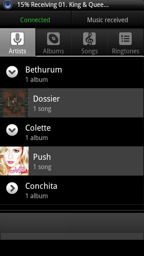 Exchanging music from your phones is just a few clicks, a few seconds away!