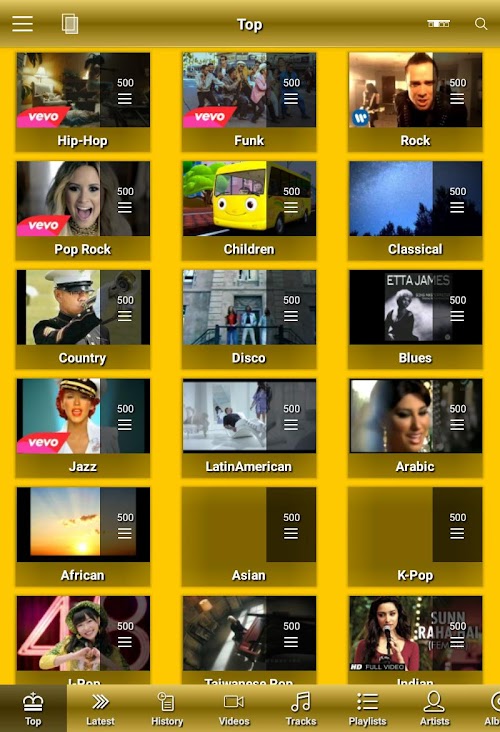 So that's why Top and Latest Music videos are implemented.
