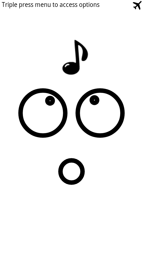 -While the phone is shaken an audio file of your choice will be played, the smiley will be turned to a confused face and the phone will be flashing. While the phone stays still the music stops.