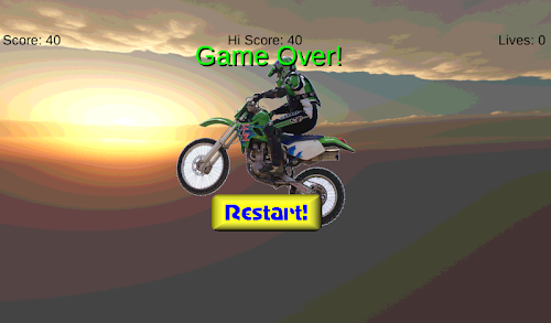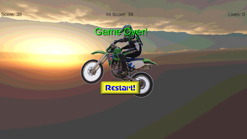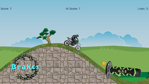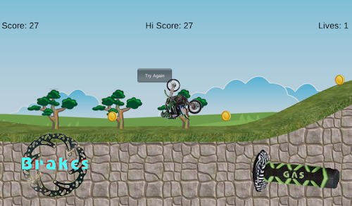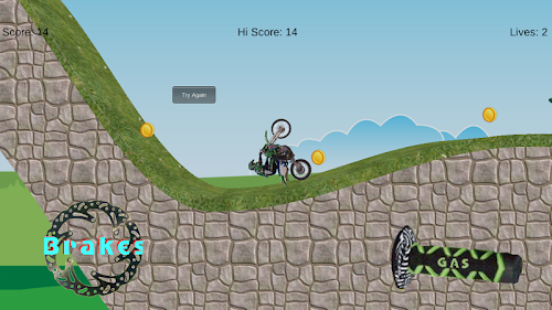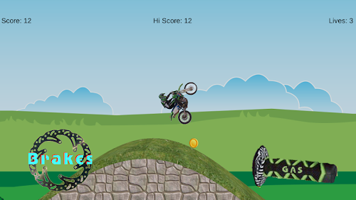 Ride a KLX 250r on challenging terrain. Collect as many coins as you can without crashing. Make sure you take it easy with the gas, this bike has a little bit of power, to keep yourself from becoming airborne or pulling a wheelie and flipping right over.