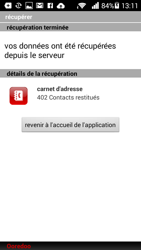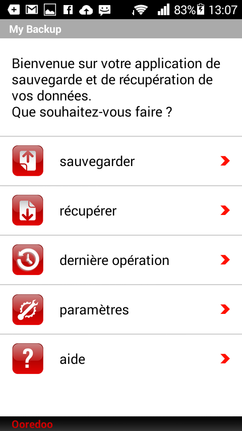 Avec l'application My Backup de Ooredoo, sauvegardez votre répertoire (SIM et Téléphone) en toute sécurité et récupérez l’ensemble de vos contacts à tout moment !With the My Backup application Ooredoo, save your phonebook (SIM and Phone) safely and recover all your contacts anytime!