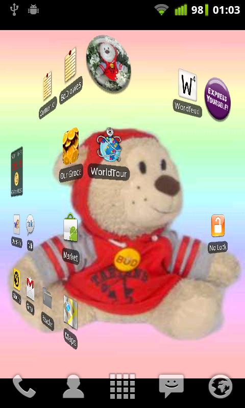 Based on the Noonoors app, this app allows you to have a cute teddy bear on your home screen at all times. The bear follows your movements as you change screens or move icons. He moves by himself when he gets bored, and after a while he eventually falls asleep until some new activity happens.