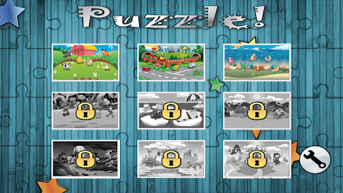 - 3 free animated puzzles (farm animals, city and ocean theme)