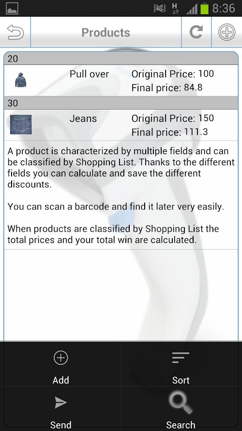 You can classified your items by shopping list and calculate the total price and the total discount of your list of items.