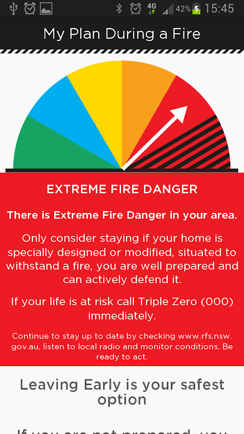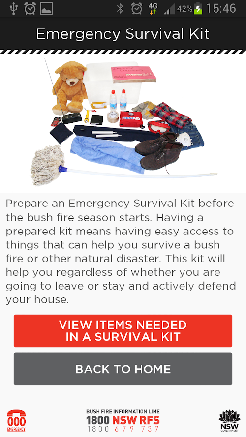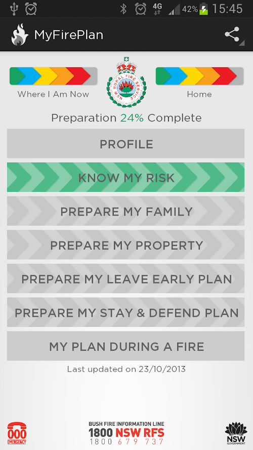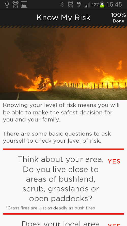 This application will guide you through the steps necessary to prepare your Bush Fire Survival Plan.