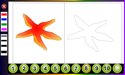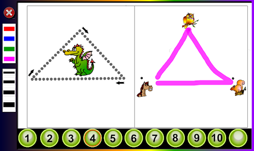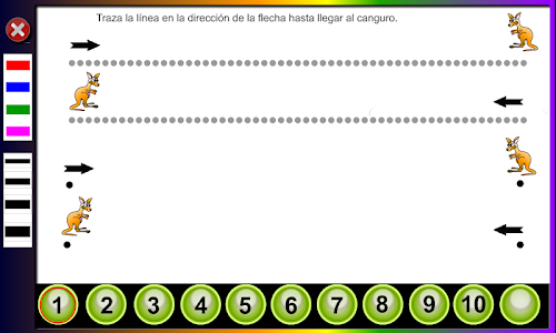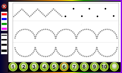 The activities are numbered in order of increasing difficulty . Each activity can adjust the difficulty level by selecting a line width . The finest level is more difficult . For this reason it is recommended to start with thicker lines .
